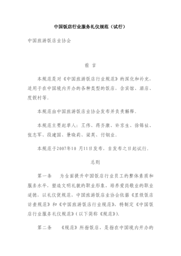 中國飯店行業服務禮儀規范(試行)