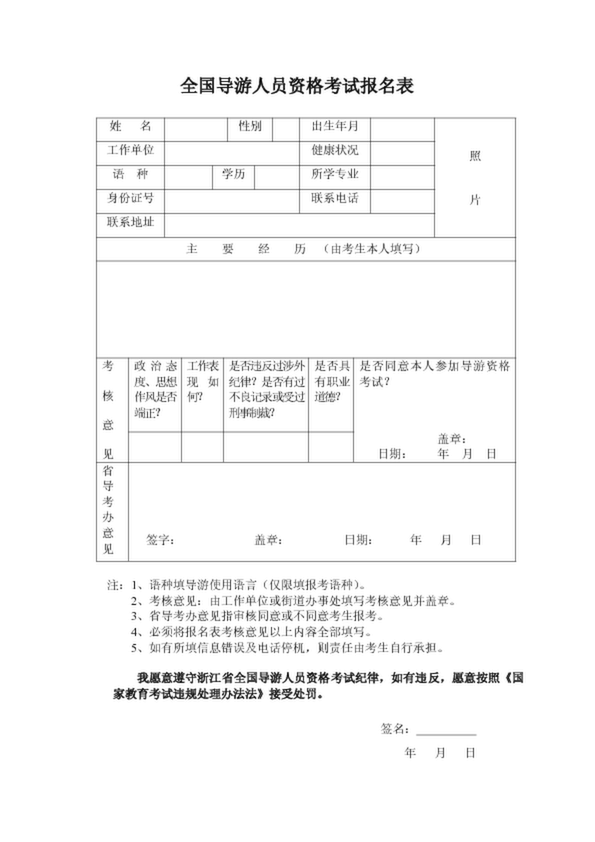 全國導游人員資格考試報名表
