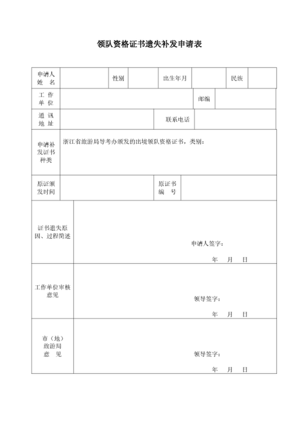 出境領隊證遺失補發申請表
