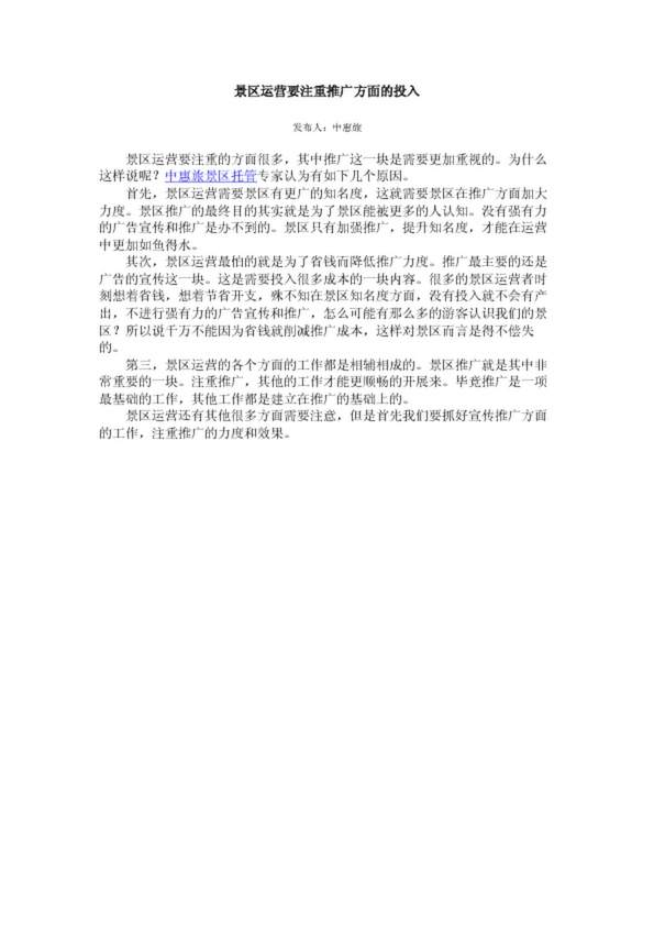 景區運營要注重推廣方面的投入