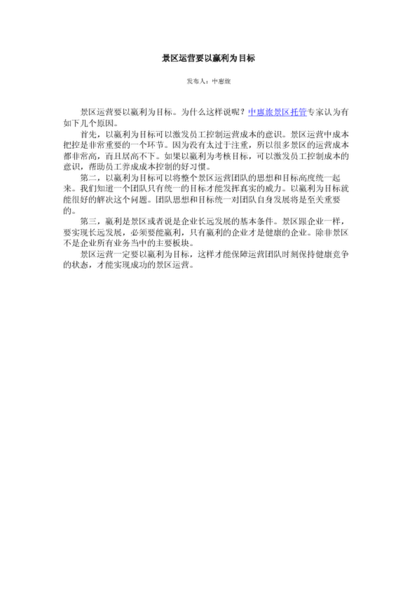 景區運營要以贏利為目標