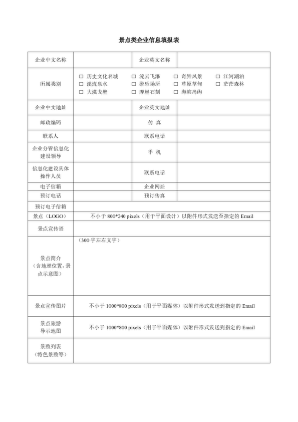 景點企業信息填報表