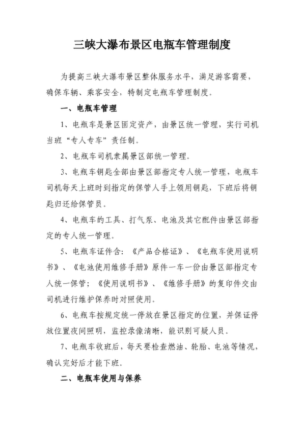 三峽大瀑布景區電瓶車管理制度(13.50KB)