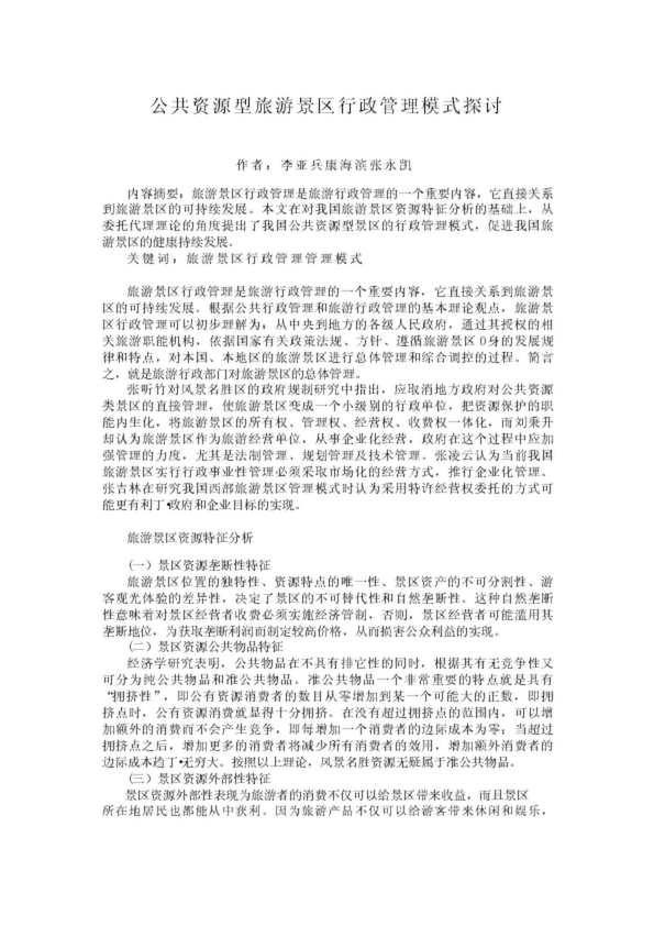公共資源型旅游景區行政管理模式探討(95.40KB)
