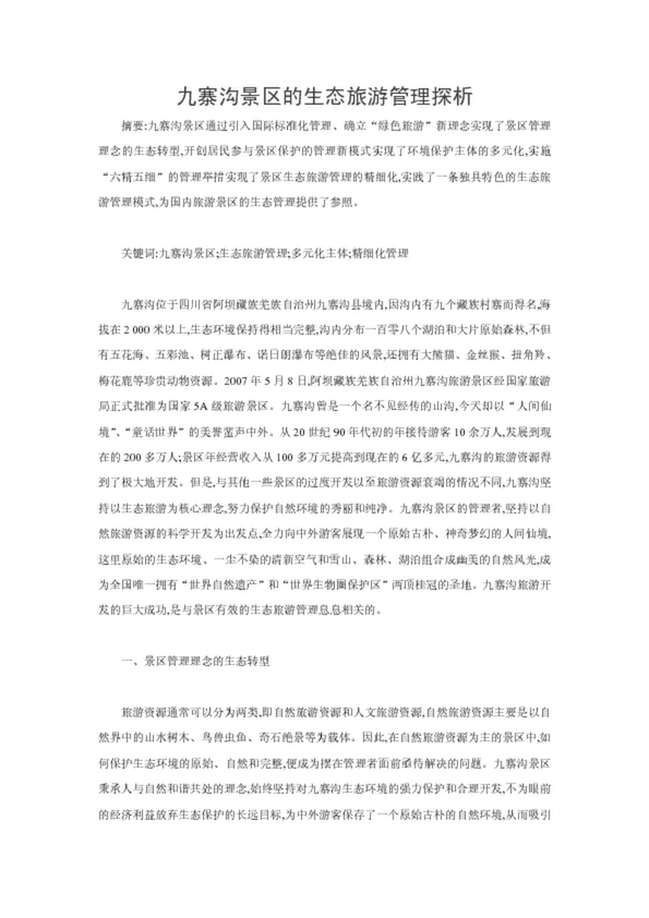 九寨溝景區的生態旅游管理探析(18.50KB)