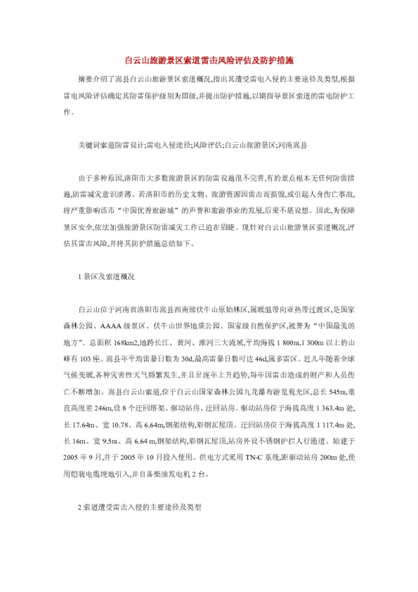 白云山旅游景區索道雷擊風險評估及防護措施(14.50KB)