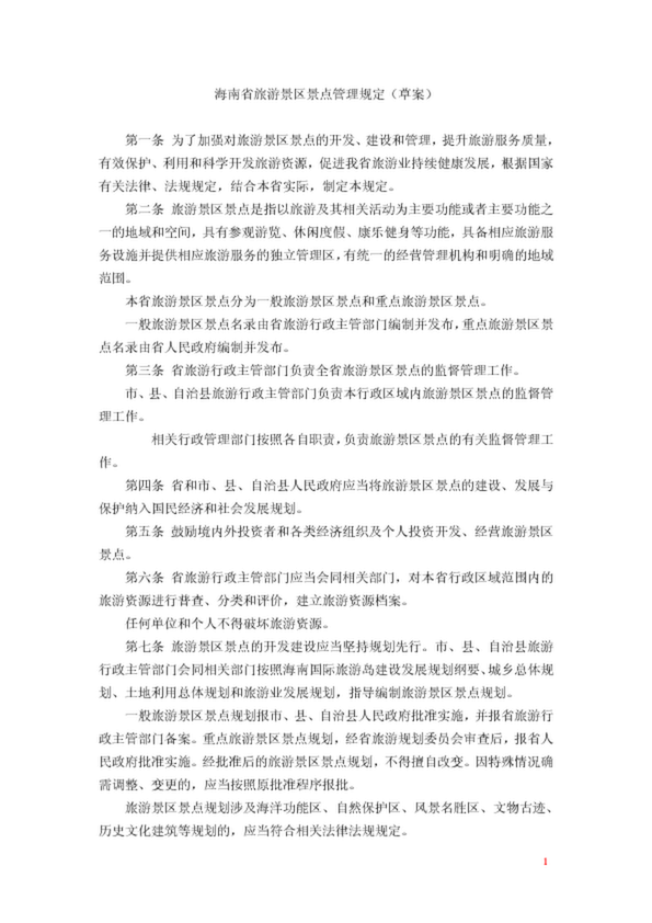 海南省旅游景區景點管理規定(草案)
