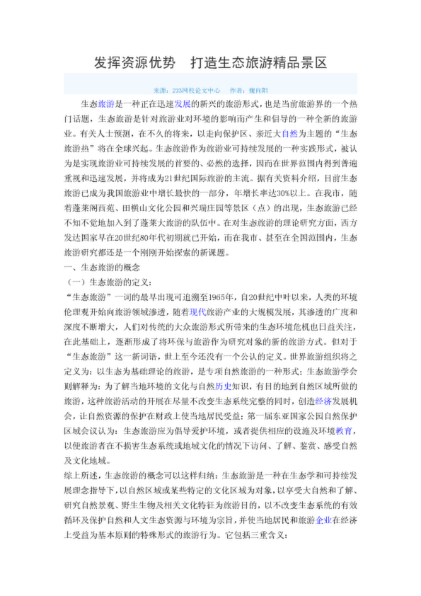發揮資源優勢 打造生態旅游精品景區(66.00KB)
