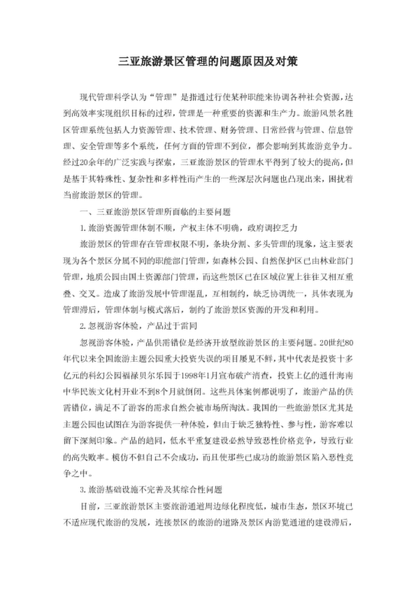三亞旅游景區管理的問題原因及對策