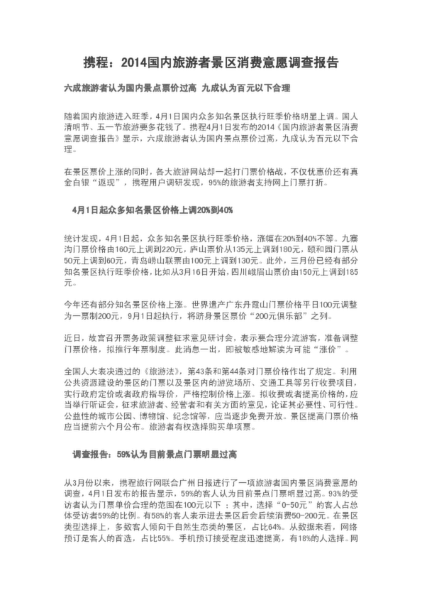 攜程:2014國內旅游者景區消費意愿調查報告(0.14MB)