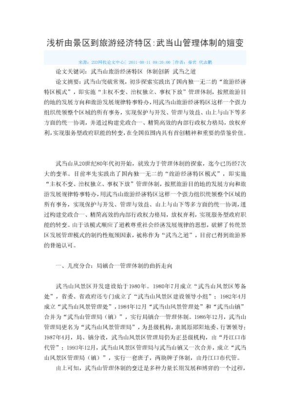 淺析由景區到旅游經濟特區武當山管理體制的嬗變(32.50KB)