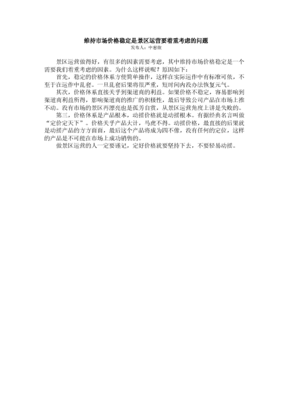 維持市場價格穩定是景區運營要著重考慮的問題(17.64KB)