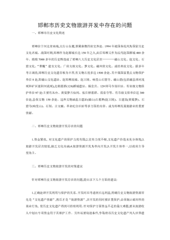 邯鄲市歷史文物旅游開發中存在的問題(15.50KB)