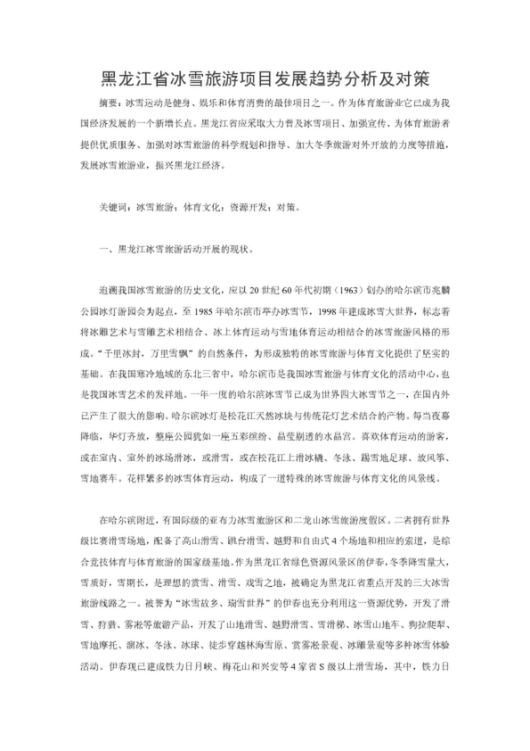 黑龍江省冰雪旅游項目發展趨勢分析及對策