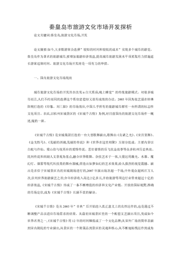 秦皇島市旅游文化市場開發探析