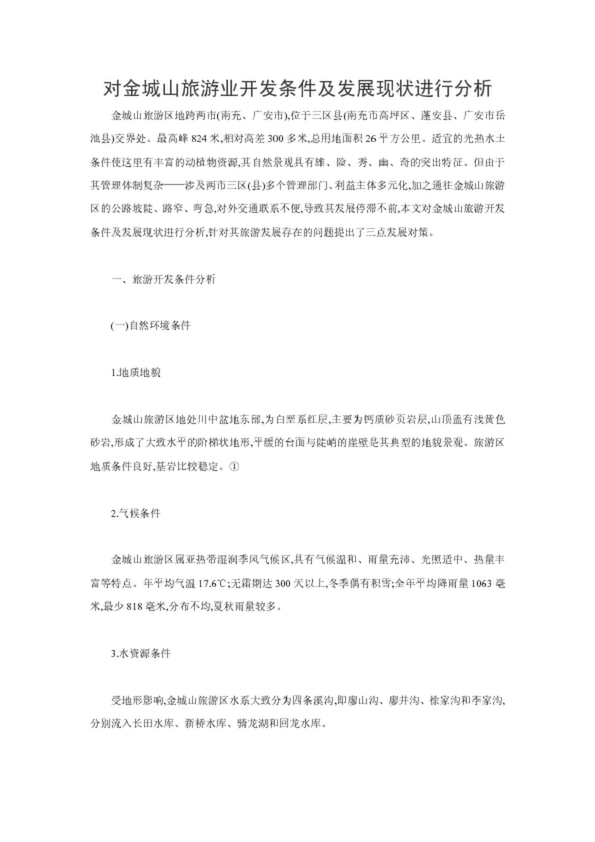 對金城山旅游業開發條件及發展現狀進行分析(19.50KB)