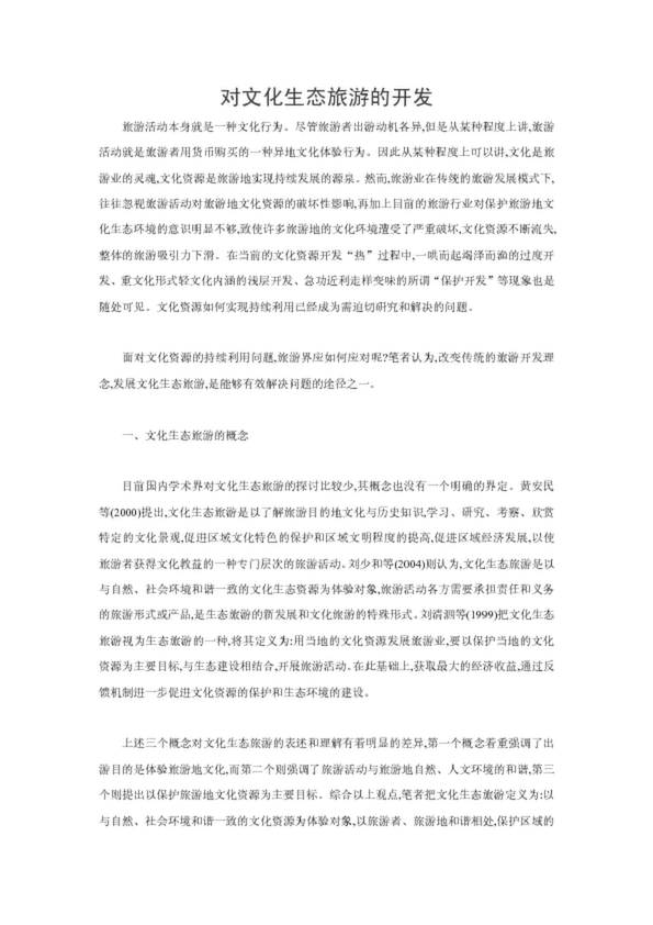 對文化生態旅游的開發