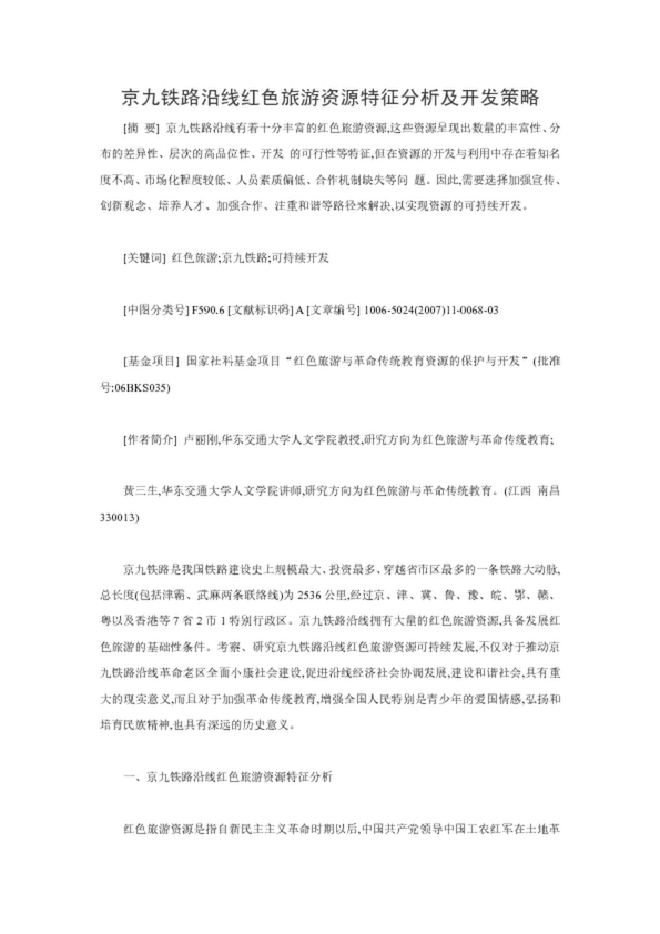 京九鐵路沿線紅色旅游資源特征分析及開發策略