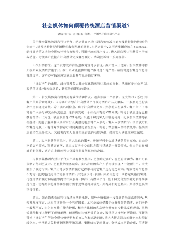 2014年5月中國酒店業經濟型品牌發展報告