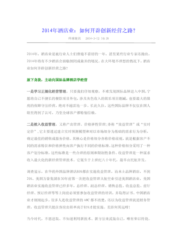 2014年5月中國酒店業經濟型品牌發展報告