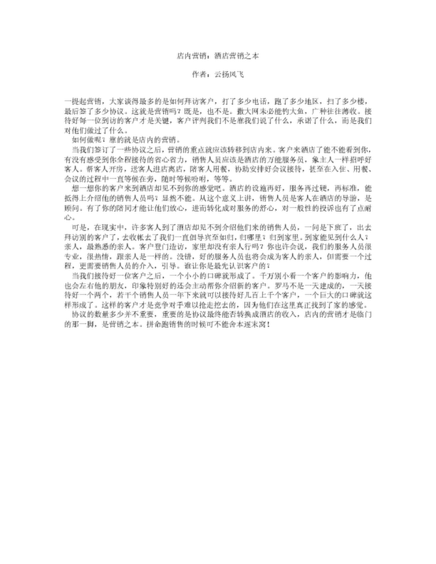 店內營銷:酒店營銷之本(11.00KB)