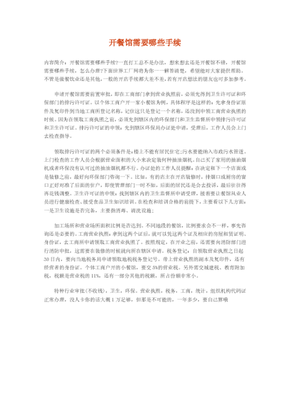 開餐館需要哪些手續(24.50KB)