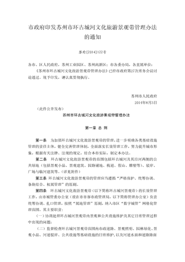 市政府印發蘇州市環古城河文化旅游景觀帶管理辦法的通知