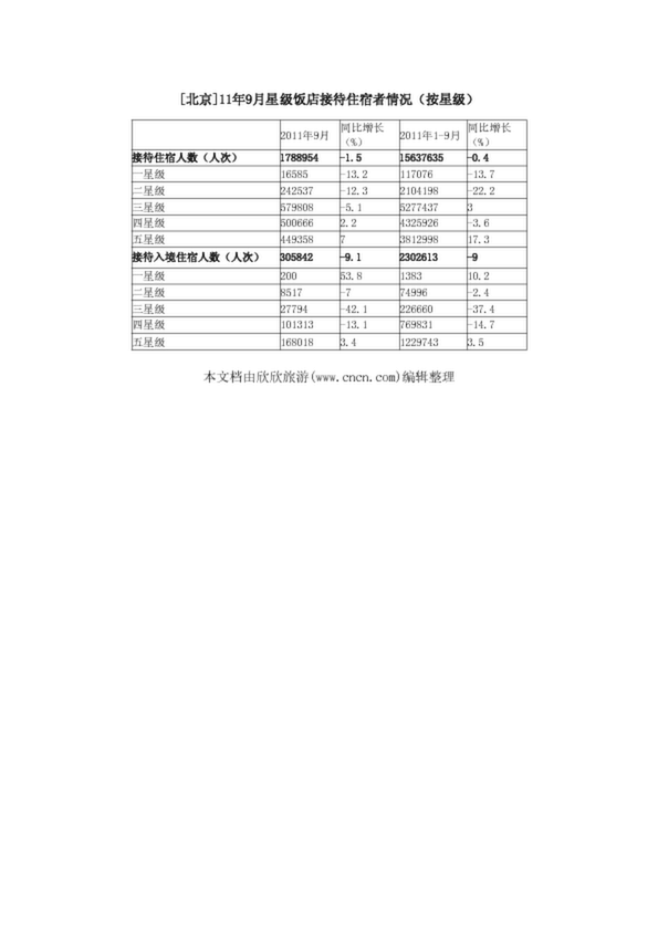 [北京]11年9月星級飯店接待住宿者情況(按星級)(62.89KB)