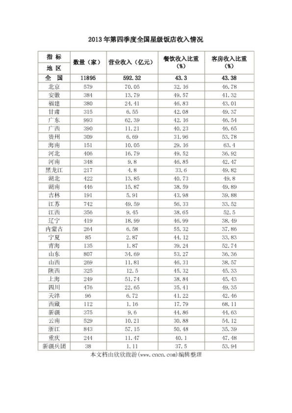 2013年第四季度全國星級飯店收入情況(12.38KB)