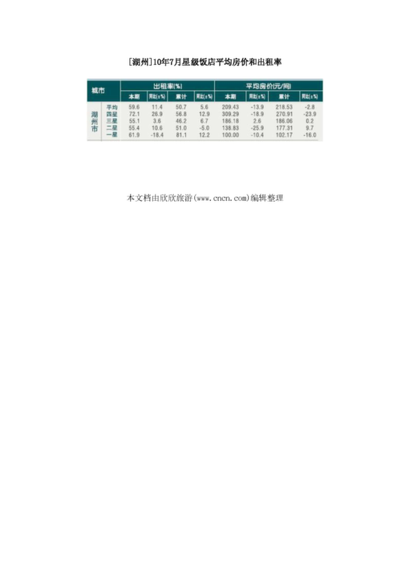 [湖州]10年7月星級飯店平均房價和出租率