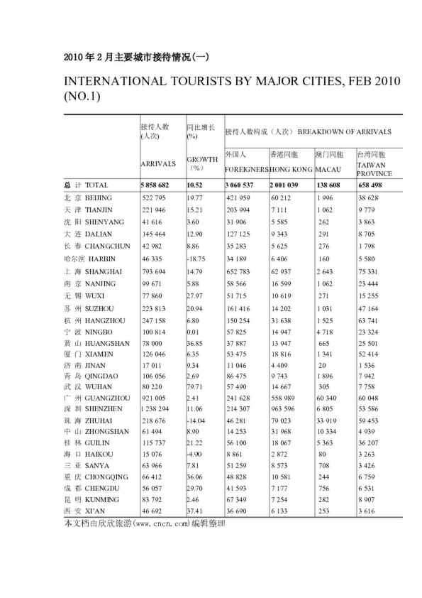 2010年2月主要城市接待情況(一)(87.28KB)