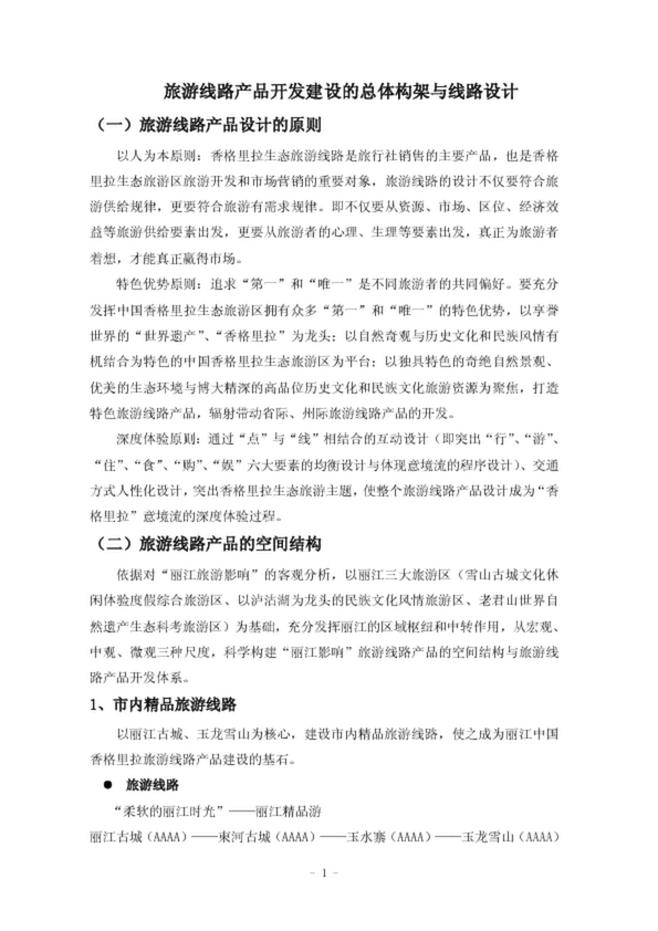 《香格里拉旅游線路產品開發建設的總體構架與線路設計》...形象定位、總體布局、旅游產品和線路、基礎設施和旅游服務設施的建設、市場...
