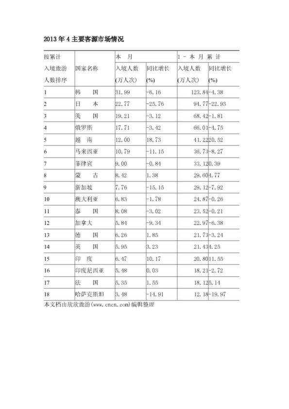 2013年4主要客源市場情況(36.08KB)