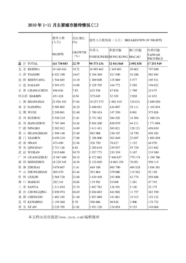 2010年1-11月主要城市接待情況(二)(81.88KB)