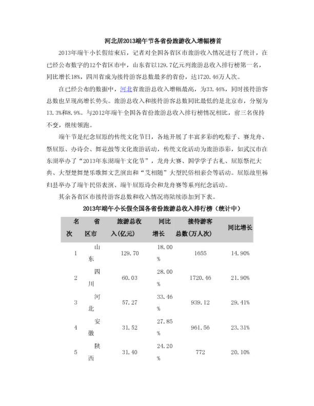 河北居2013端午節各省份旅游收入增幅榜首(44.00KB)
