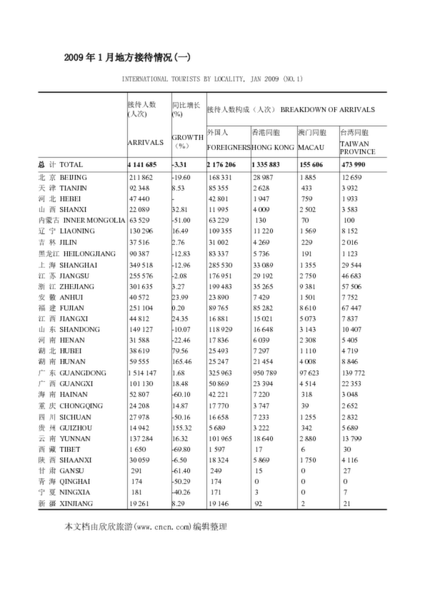 2009年1月地方接待情況(一)