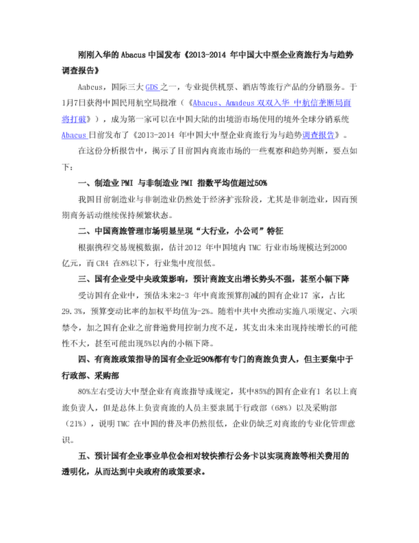 剛剛入華的Abacus中國發布《2013-2014 年中國大中型企業商旅行為與趨勢調查報告》