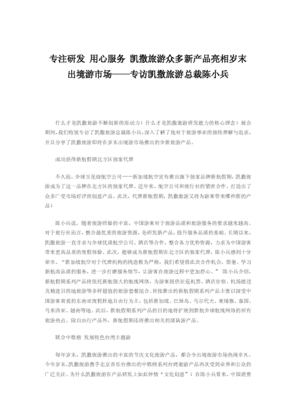 專注研發 用心服務 凱撒旅游眾多新產品亮相歲末出境游市場——專訪凱撒旅游總裁陳小兵