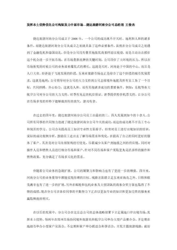 發揮本土優勢優化公司構架發力中原市場—捷達旅游河南分公司總經理 王俊杰(12.50KB)