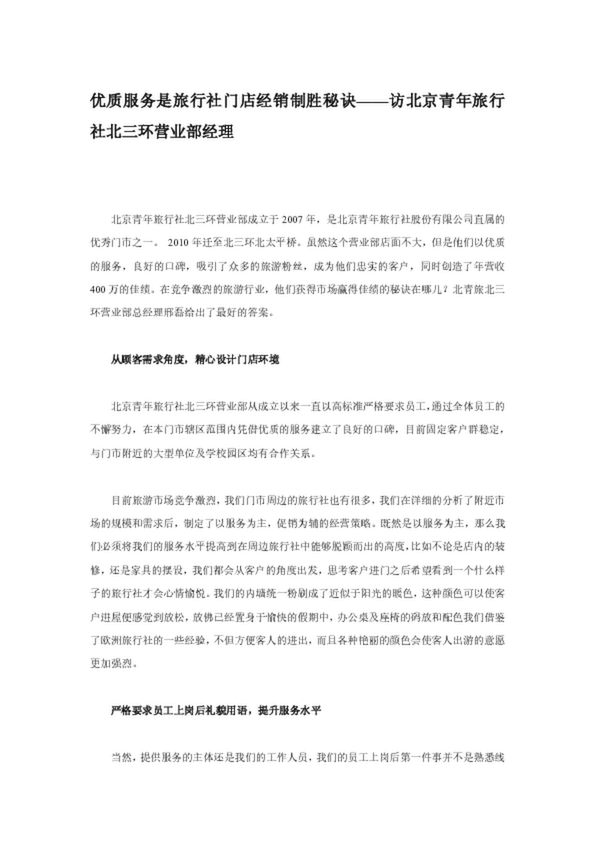 優質服務是旅行社門店經銷制勝秘訣——訪北京青年旅行社北三環營業部經理