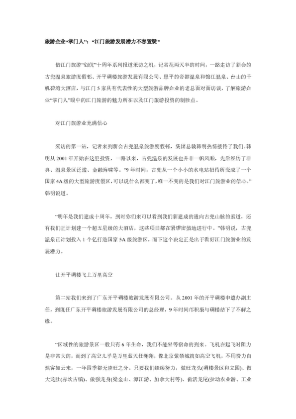 旅游企業“掌門人”:“江門旅游發展潛力不容置疑”