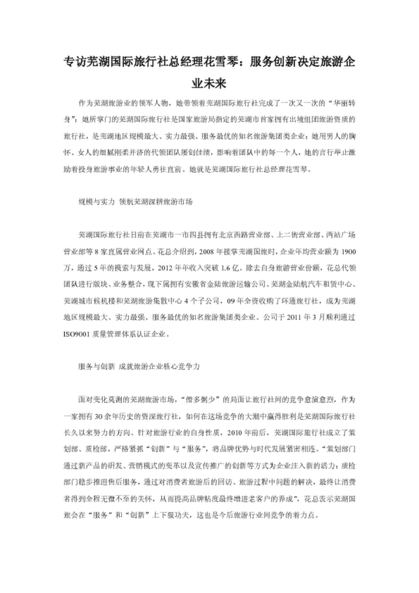 專訪蕪湖國際旅行社總經理花雪琴