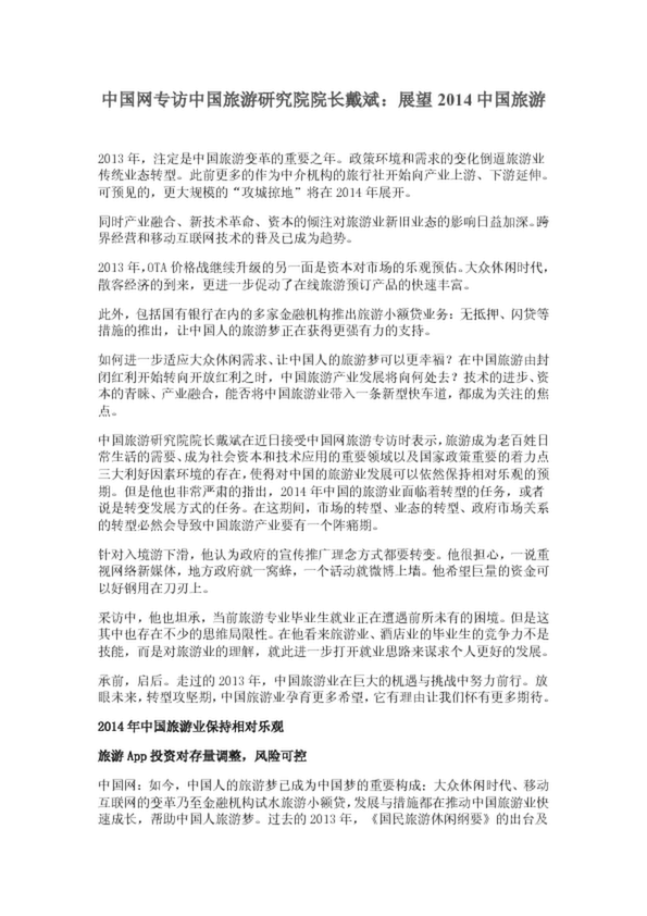 中國網專訪中國旅游研究院院長戴斌:展望2014中國旅游(38.50KB)