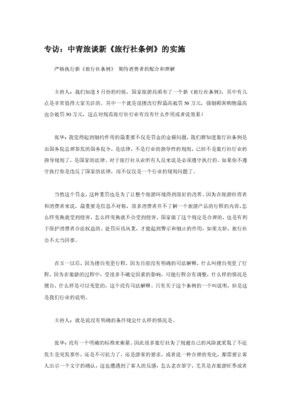 專訪:中青旅談新《旅行社條例》的實施(15.50KB)