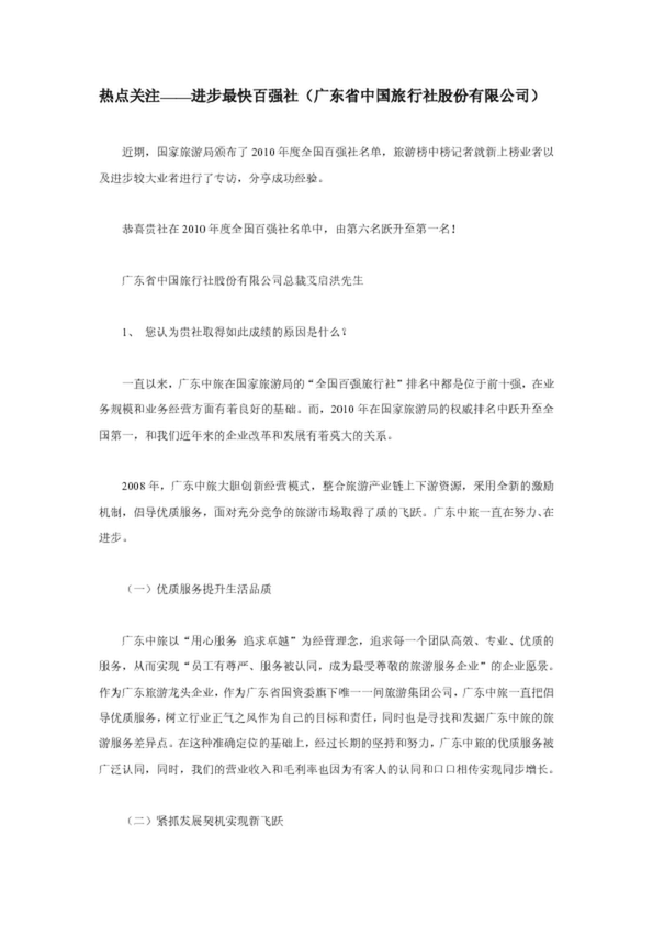 熱點關注——進步最快百強社(廣東省中國旅行社股份有限公司)(13.50KB)