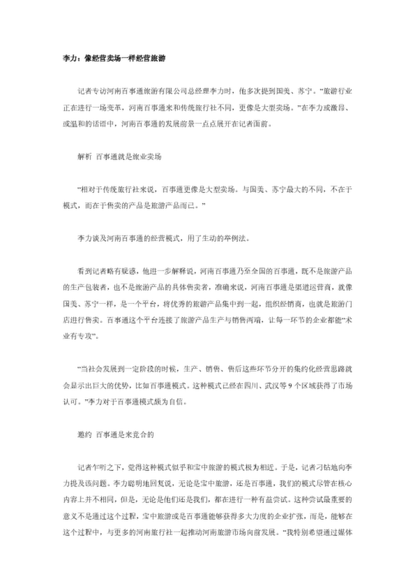 李力:像經營賣場一樣經營旅游(13.00KB)