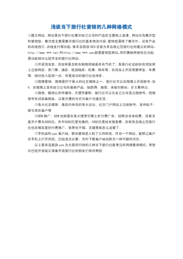 淺談當下旅行社營銷的幾種網絡模式(12.50KB)
