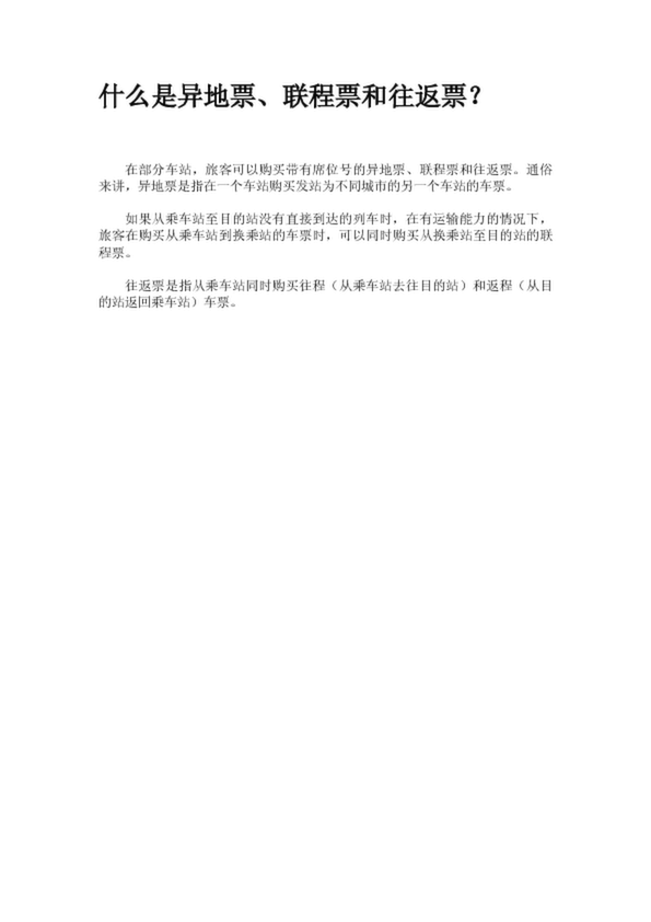 什么是異地票、聯程票和往返票?