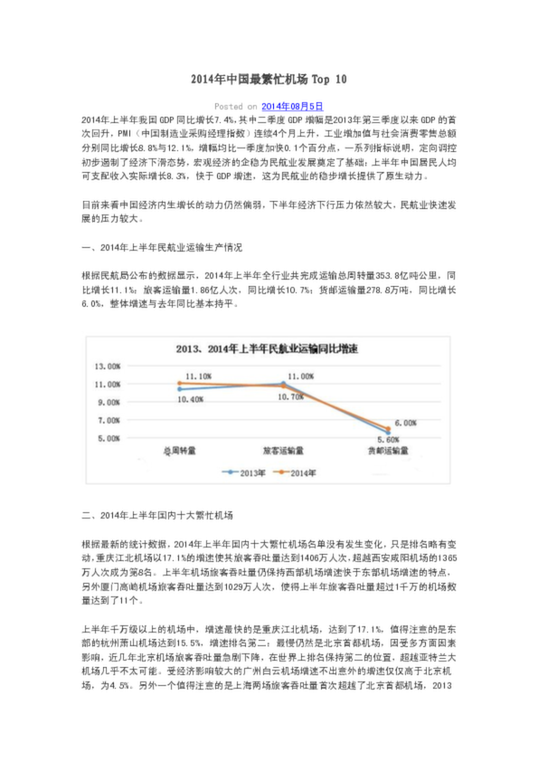 2014年中國最繁忙機場Top 10