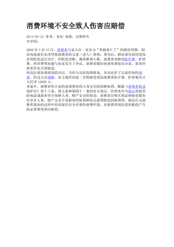 消費環境不安全致人傷害應賠償(3.00KB)